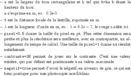 Ces valeurs sont celles choisies par défaut, sauf pour negatif=false.