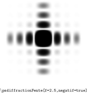 \begin{pspicture}(-4,-5)(4,5) \psdiffractionFente[f=2.5,negatif=true] \uput[270](0,-4){$\backslash$\texttt{psdiffractionFente[f=2.5,negatif=true]}} \end{pspicture}